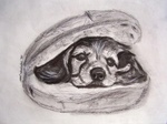 Tekeningen op dik tekenpapier van voorgaande jaren. Wordt niet meer gemaakt, alleen in opdracht. Helaas heb ik van de meeste verkochte tekeningen geen foto's. Ze zijn allemaal ingelijst. Op de foto één van mijn honden als pup. Lief Niet!!!!